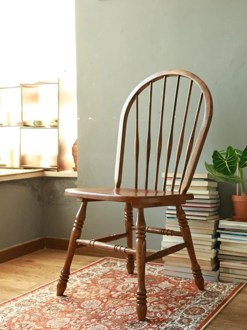 インフルエンサーおすすめ!アメリカンカントリースタイルの軽奢華レトロウィンザーチェア。高品質な無垢材使用、ダイニングルームやカフェ、アウトドアバルコニーにもぴったりのスタイリッシュなデザイン。おしゃれな空間を演出します!